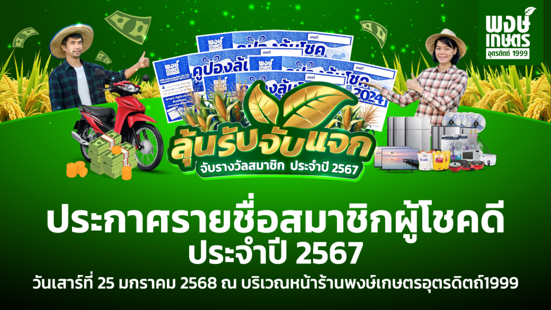 ประกาศรายชื่อสมาชิกผู้โชคดี งานจับรางวัลสมาชิกพงษ์เกษตร ประจำปี 2567