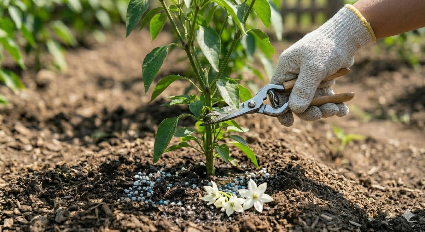 ใส่ปุ๋ยทุก 7–10 วัน จะช่วยให้พริกออกดอกและติดผลดีขึ้น